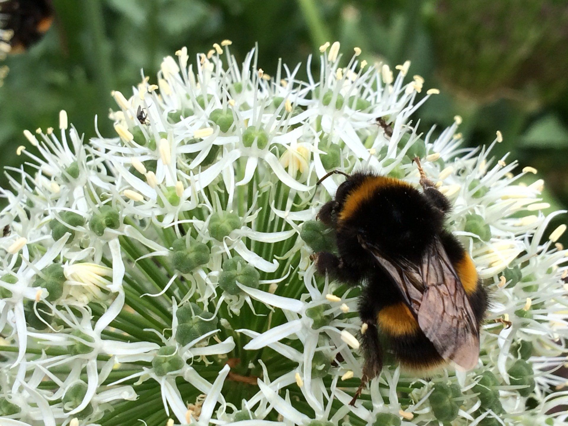 a bee enjoying Allium nectar